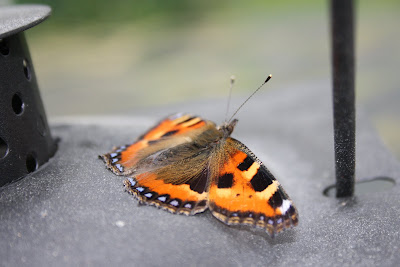 Denna vackar fjäril satt i uterummet imorse när jag skulle äta frukost