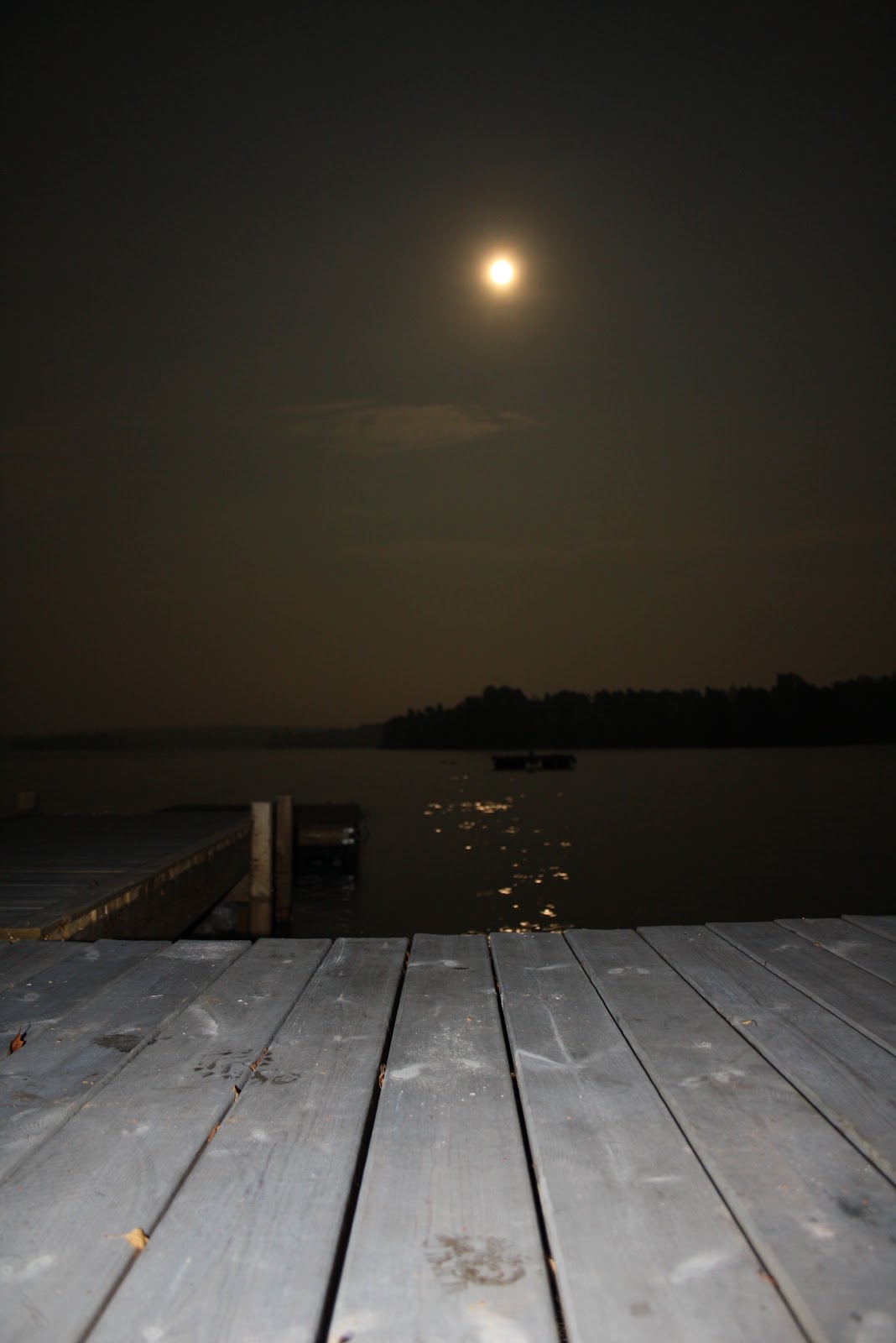 Månen glittrar i vattnet. Adjö sommarhuset för den här säsongen.