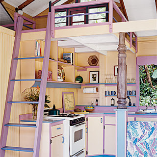 Ett loft precis som vi skall ha i nya gästhuset på ön. En enkel stege kan vara lösningen, eller en vindsstege som går att fälla in.