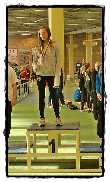 Igår tog hon silver i 60 meter blev slagen med en hundradel (hur långt är det 2 cm?).