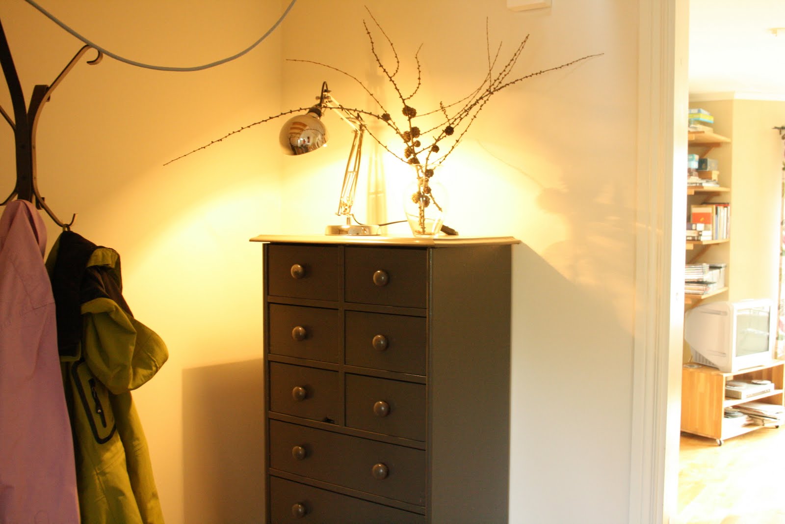 Just nu saknar jag inspiration till att fylla min nya vita hall. Selma Lagerlöv tavlorna åker nog upp igen. Gillar det mörka mot det vita, ärvd spegel från A:s mormor. Min ommålade byrå får vara med. Inspiration tack