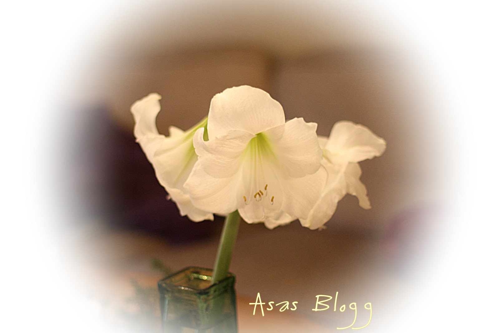 Mina fina vita amaryllis har blommat över en vecka nu med 4 stora blommor. Idag klippte jag av den och satte den i en vas.