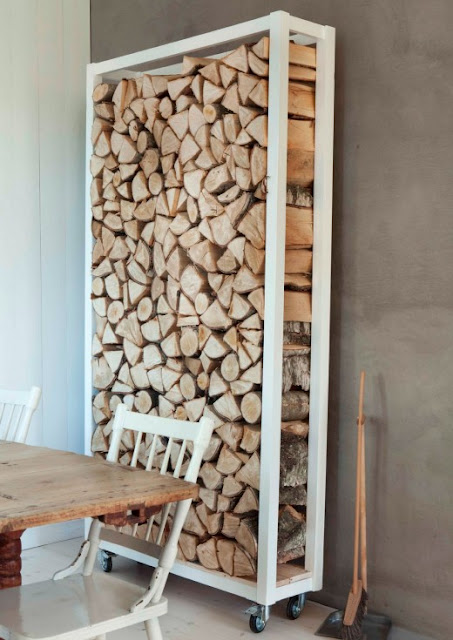 I ett tidigare inläg, se här, så skrev jag om hur fint det är att inreda med ved. I bloggen husligheter hittade jag fler bilder på läcker vedförvaring från Trine Thorsen.