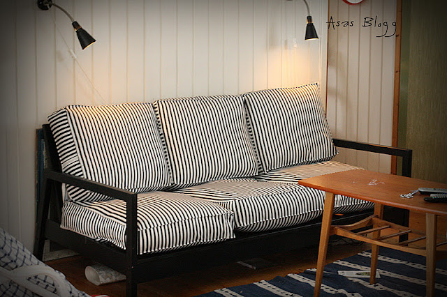 Idag fick jag äntligen prova mitt lilla projekt i sommarhuset. Jag har varit sugen på att köpa Bemz snygga överdrag till min Lillbergssoffa i Sommarhuset.