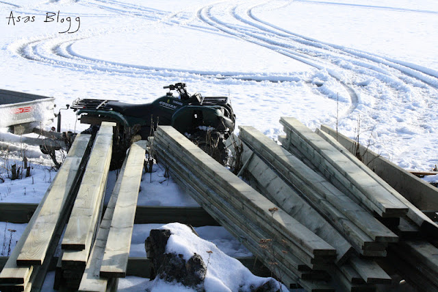 Oj, oj, oj vad min kontorskropp är trött just nu. Mr A och undertecknad har kört ut 80 tryckimpregenerade plankor till nya trädäcket. Det blev en del lyftande hör här: