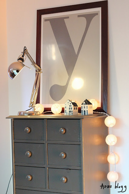 Min Y tavla fick flytta ner i hallen tillsammans med en ny ljusslinga.