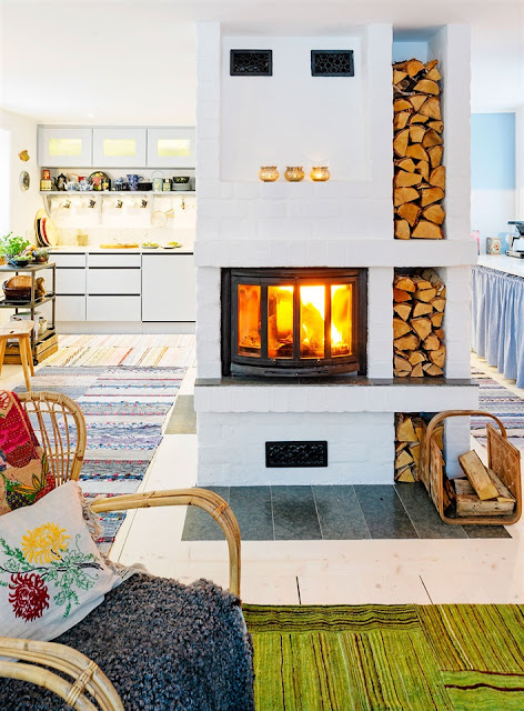 Gärna en murad spis som här, jättefint med marmor,