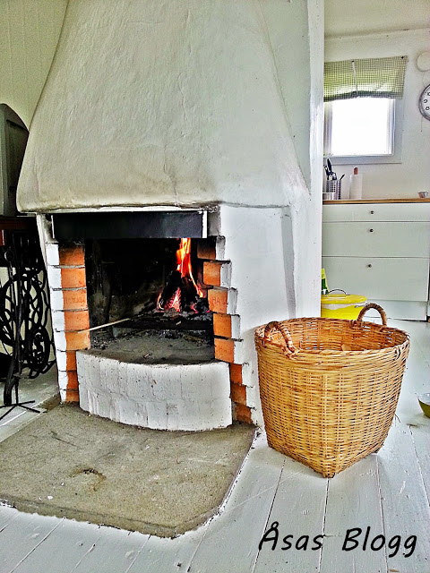 I sommarhuset har vi en också en öppen spis.