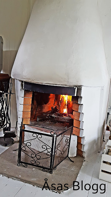 Har kokat kaffe och tänt en eld i brasan.