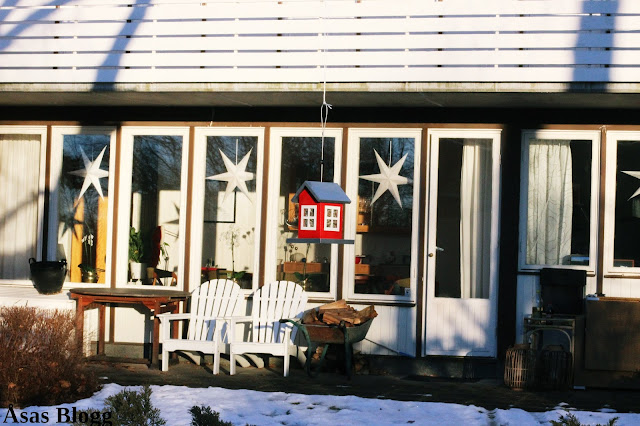 I bakgrunden ser vi 60-talshuset med julstjärnor en masse.