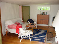 Jag tog några bilder på det nymålade TV-hörnet och sovrummen med nya gardiner.