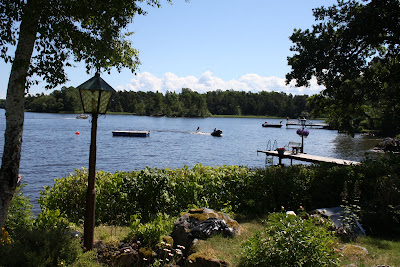 Här stod våran redskapsbod förut. Maken skall bygga ett gästhus på 30 kvm i höst och nästa vår. Han har en egen ritning som är riktigt häftig. Till vänster i bild ser man en syrenhäck den skall på sikt tas ned och vi kommer att bygga ett nytt däck vid vattnet. I bakgrunden ser man grannarnas bastu/relax hus.